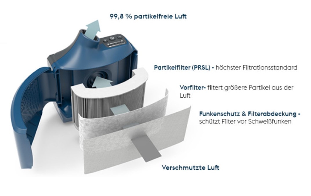 Komplettsystem bestehend aus Guardian Air Kit - Komplette Gebläseeinheit, mit einem Guardian50M Air Schweißhelm in einer komfortablen Tasche.