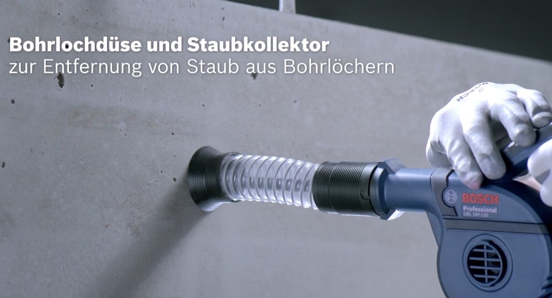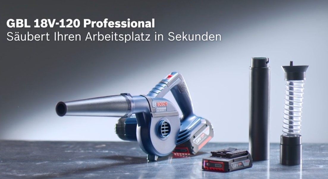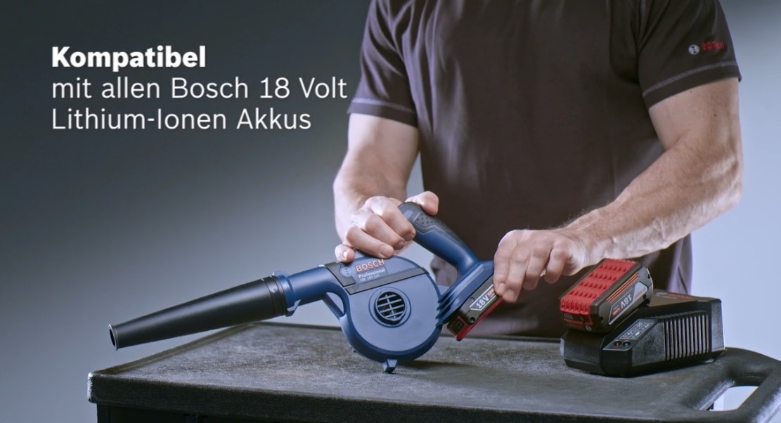 Das Akku-Gebläse GBL 18V-120 Professional aus dem 18V-Sortiment erledigt Reinigungsarbeiten im Handumdrehen. Eine Luftgeschwindigkeit von bis zu 270 km/h bietet Power und erzielt gute Ergebnisse beim Saubermachen von Flächen. Das Gebläse kann zum Säubern von Arbeitsbereichen, Reinigen von Bohrlöchern oder für weitere vielfältige Anwendungen eingesetzt werden. Außerdem sorgt ein kompaktes und ausgewogenes Design für einfaches Handling und zusätzliche Kontrolle. Das Gerät ist kompatibel mit allen Bosch Professional 18V-Akkus und -Ladegeräten (Professional 18V System). Auch kompatibel mit AMPShare, der markenübergreifenden Akku-Allianz.