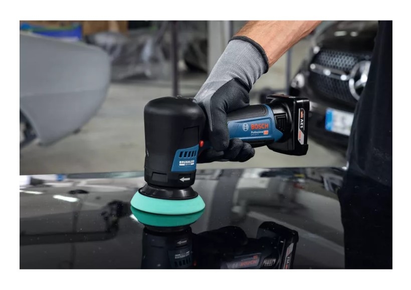 Der Rotationspolierer GPO 12V-77 bietet dank seines bürstenlosen Motors eine konstante Leistung. Er kombiniert Komfort und Präzision mit dem Gasgebeschalter für Feineinstellungen innerhalb der gewählten Stufe und dem Sanftanlauf, um Spritzer zu vermeiden. Er verfügt über HMI-Funktionen - eine Akku-Ladestandsanzeige und eine 5-stufige Geschwindigkeitsauswahl - mit der du den Polierprozess steuern kannst. Dieses Werkzeug erleichtert das Polieren durch einen Verriegelungsknopf, wodurch der Auslöser während der Arbeit gedrückt bleibt. Mit seinem kompakten, ergonomischen Design eignet er sich ideal zum Polieren kleiner Flächen an schwer zugänglichen Stellen.