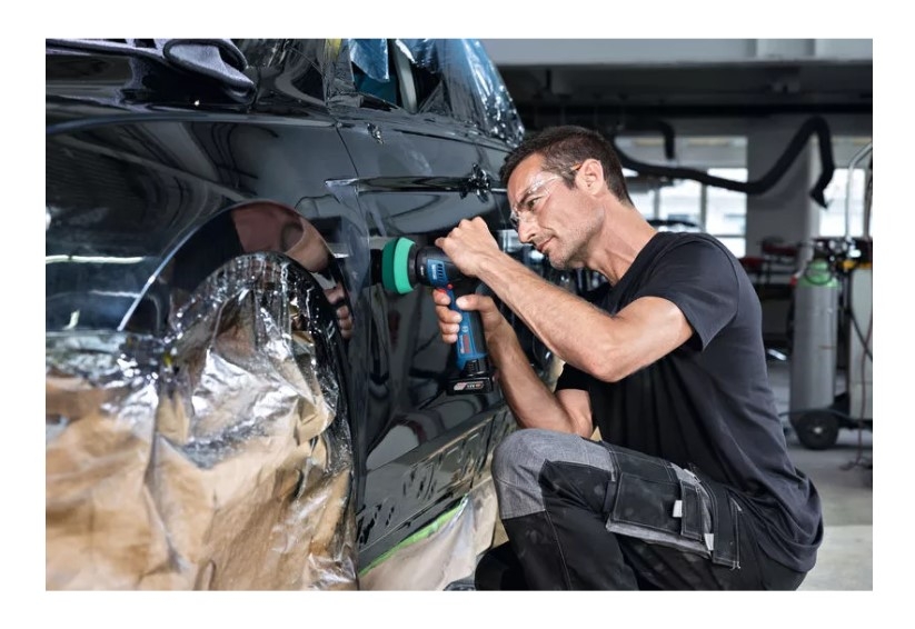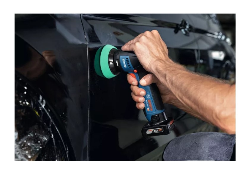 Der GPO 12V-77 poliert kleine Flecken, entfernt tiefe Kratzer und reinigt stark verwitterte Lacke. Es ist mit allen GBA 12V-Akkus kompatibel.