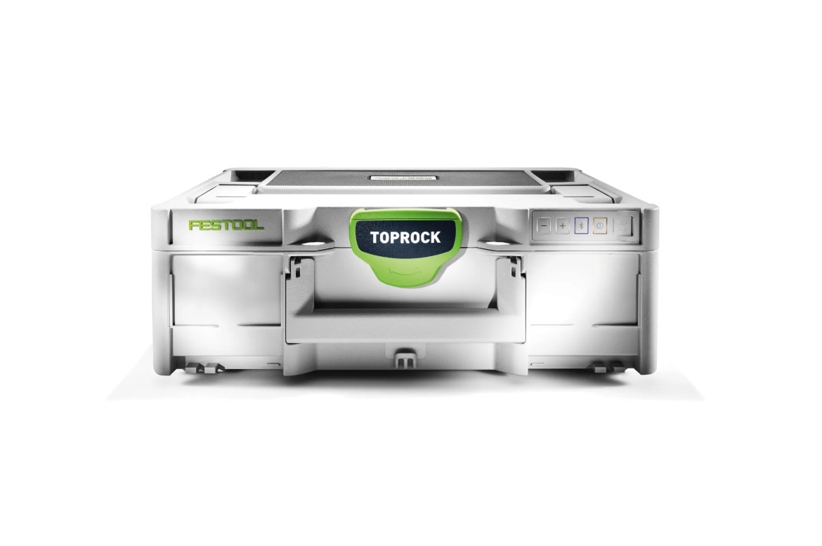 Das neue Bandmitglied in der Festool Sound-Familie heißt TOPROCK. Der Bluetooth® Lautsprecher im Systainer³-Deckel vereint alle Vorteile des Festool Systainer-Systems mit hervorragendem Klang. Vier Hochleistungslautsprecher sorgen in Kombination mit der clever designten Resonanzkammer für einen klaren und voluminösen Sound. Sie wollen noch mehr? Dann verbinden Sie doch einfach zwei TOPROCK mit Ihrem Smartphone und genießen raumfüllenden Stereo-Sound.