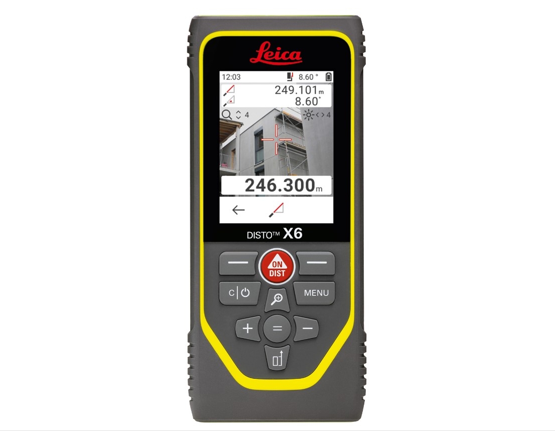 - Der Leica DISTO™ X6 ist mit einem gut beleuchteten 2,8-Zoll-Touchscreen ausgestattet und lässt sich dadurch schnell und einfach bedienen.