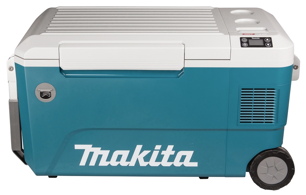Der Betrieb ist mit 40V max. oder 2x 18V Akkus möglich. Für 40V max. stehen ein zweiter Akku-Steckplatz zur Verfügung, das verdoppelt die Laufzeit. Alternativ zum Akku-Betrieb kann die Akku-Kühl- und Wärmebox mit einem Kabel an das 230 V-Stromnetz oder aber an die 12 V-/24 V-Autosteckdose angeschlossen werden. Besonders komfortabel ist der ausklappbare Handgriff, wodurch die CW002G kräfteschonend über zwei Rollen gezogen werden kann. Ein, neben dem Akku-Schacht platzierter USB-Anschluss, kann zum Laden von Navigationsgeräten oder anderen mobilen Endgeräten verwendet werden. Die CW002G hat keine Akku-Ladefunktion.