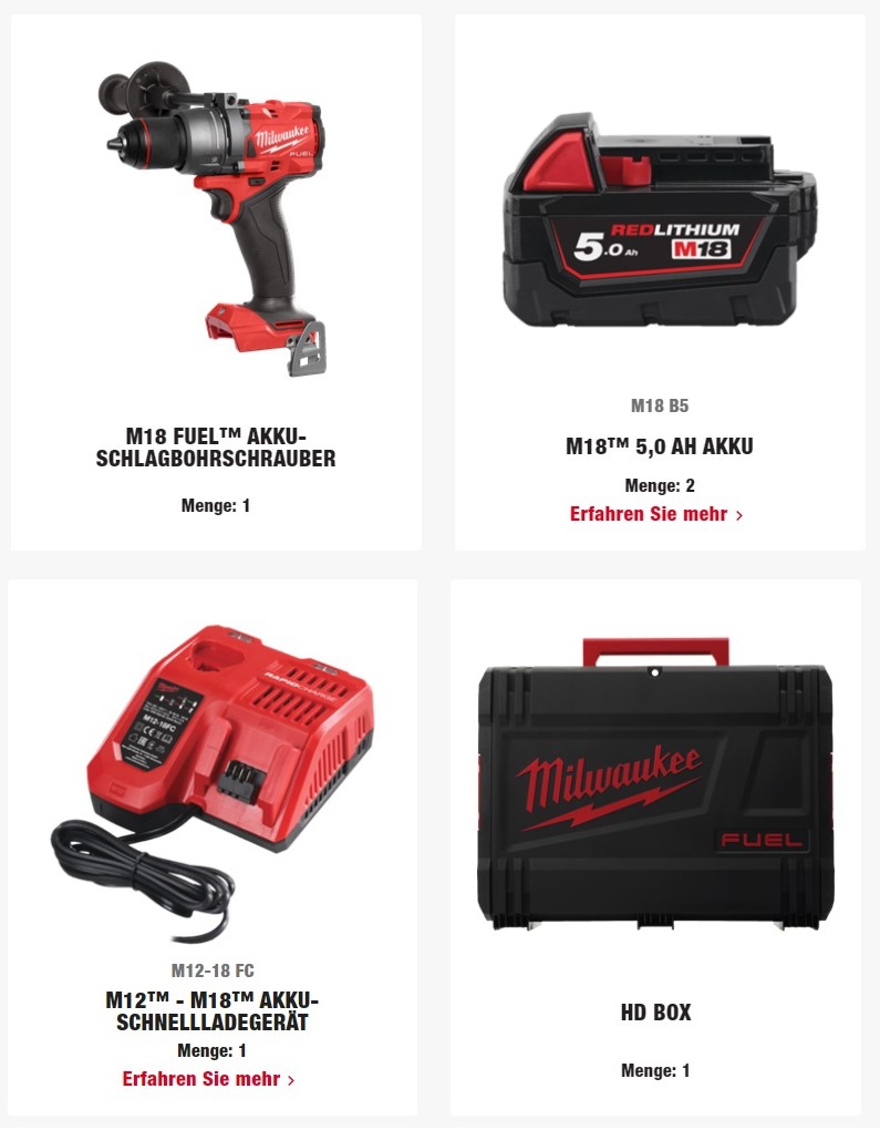 1 x Milwaukee FUEL™ Akku-Schlagbohrschrauber M18FPD3-502X