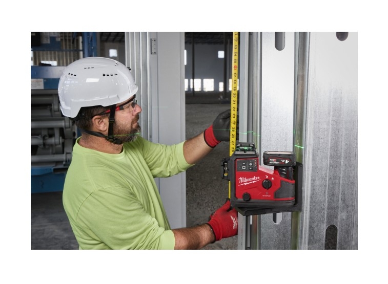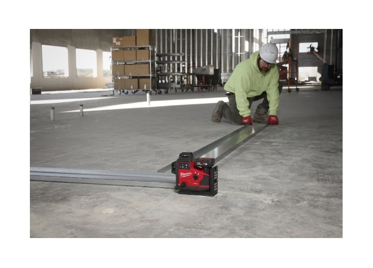 - M12™ grüner 360° 3-Ebenen-Laser bietet eine All-in-One-Funktionalität mit einer horizontalen Linie und zwei vertikalen Linien für schnelles und einfaches Ausrichten, Nivellieren, Quadrieren und Übertragen, so dass Sie große Flächen mit einem einzigen Werkzeug einfach gestalten können