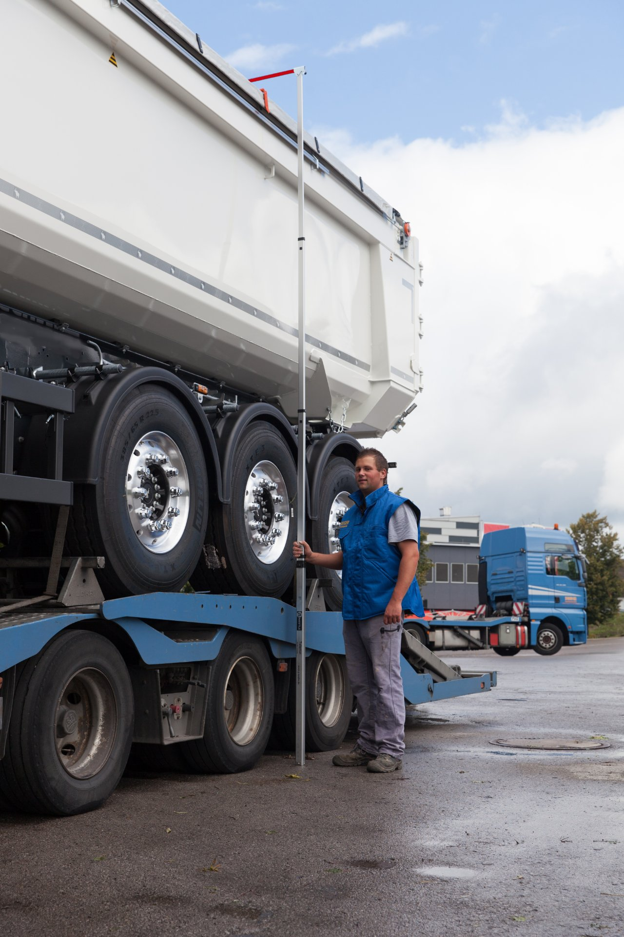 Der Teleskopmeter TELEMAT mit ausklappbarem 70 cm Haken, eignet sich bestens bei Höhenmessungen von LKW´s oder Nutzfahrzeugen.
