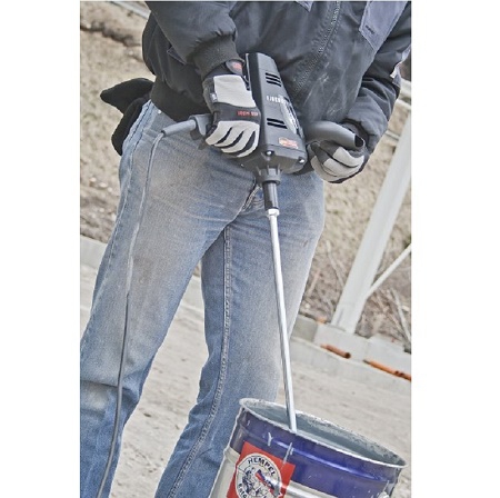 - Mischen von Baustoffen mit niedriger Viskosität, z. B. Farbe, Leim, Spachtel- und Ausgleichsmassen, Fliesenkleber