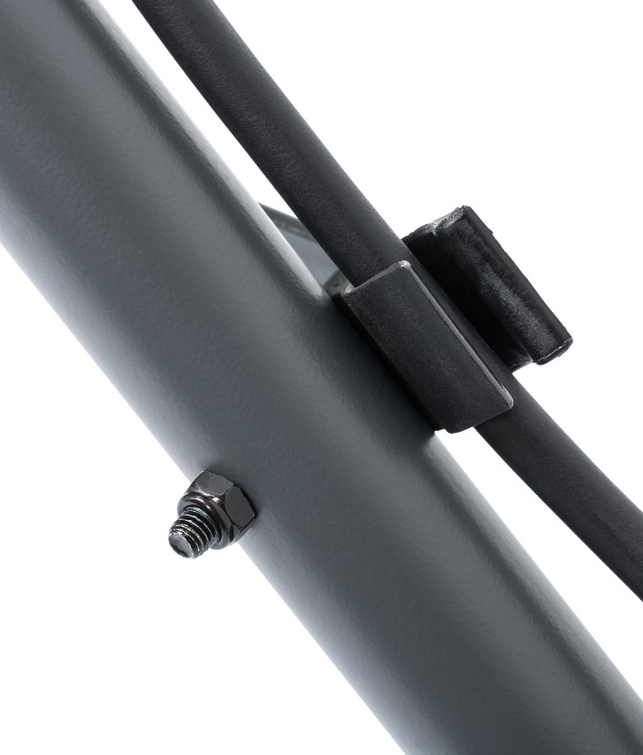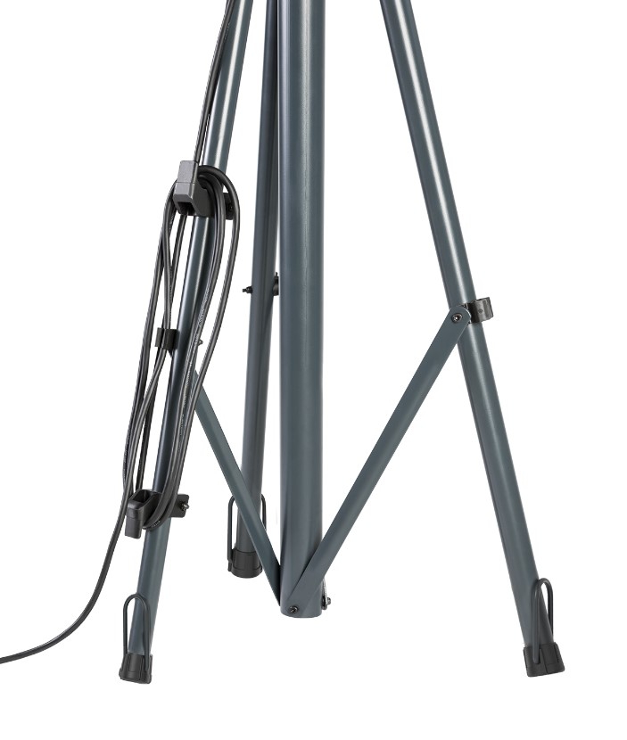 - Für erhöhte Sicherheit kann das Kabel an jedem beliebigen der drei Beine mit einem kleinen Kabelclip festgemacht werden.